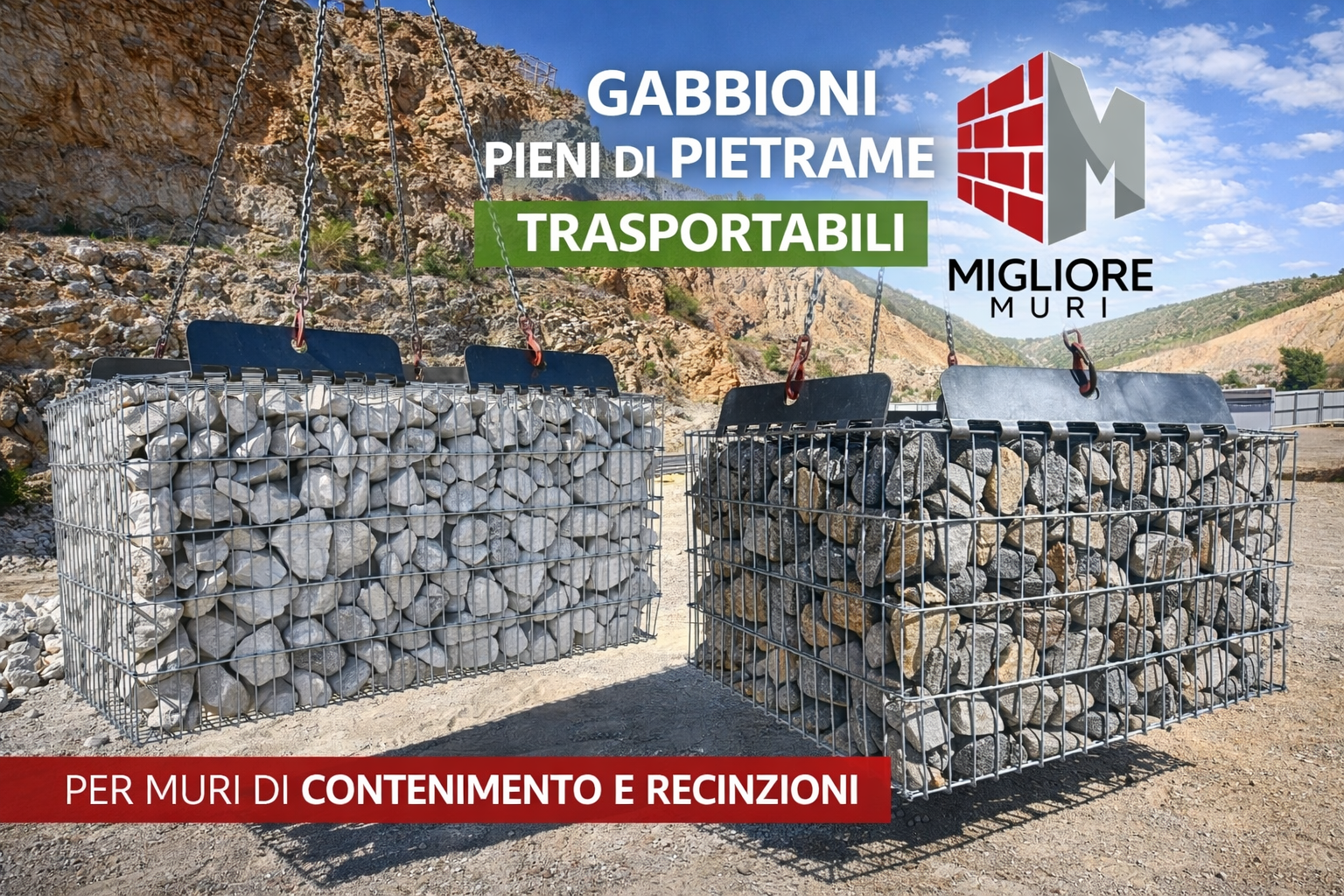 Gabbioni completi di pietra Trasportabili , ideali per muri di contenimento e strutture modulari. Resistenza e versatilità per ogni tipo di progetto.